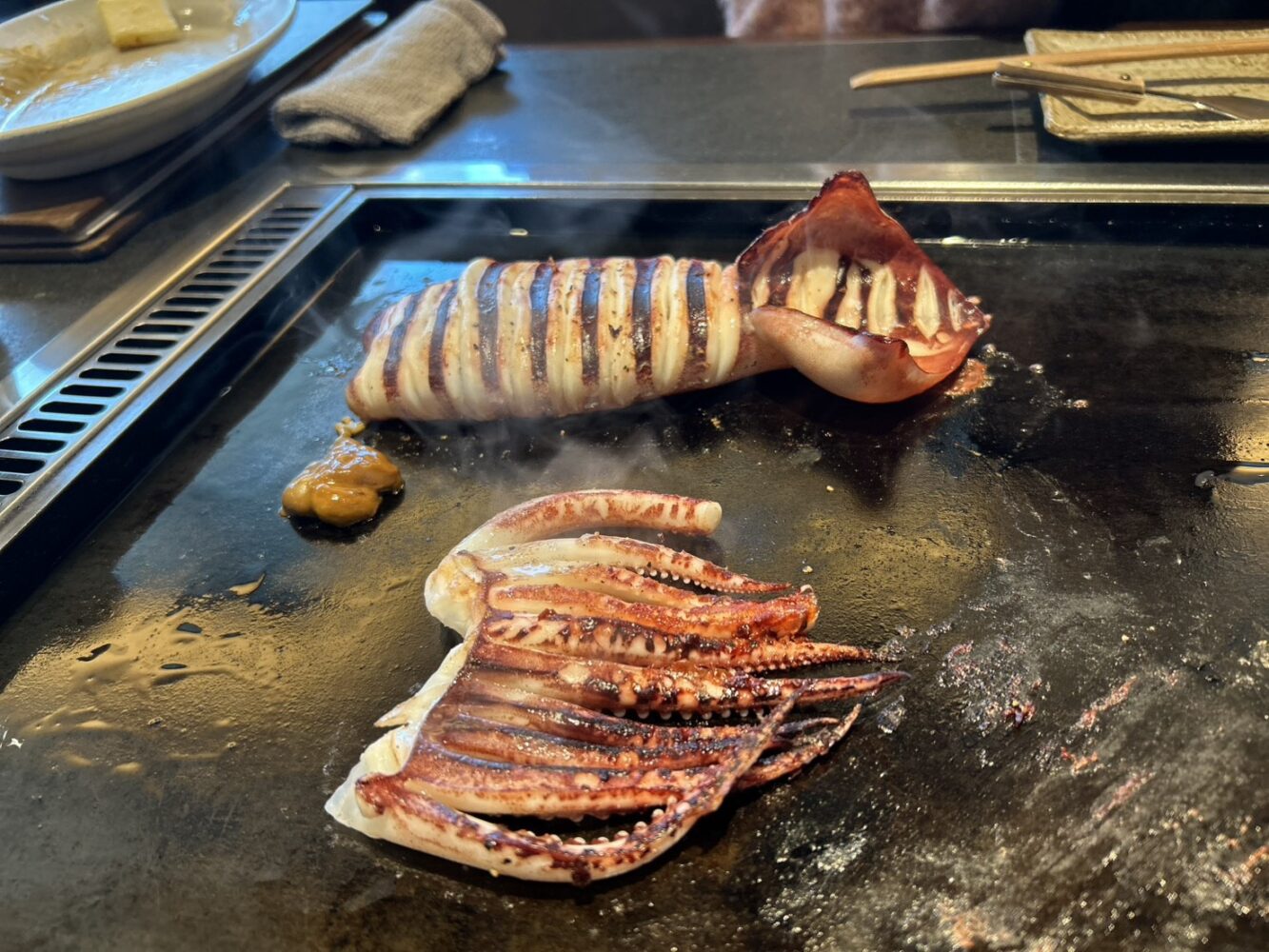 おすすめメニューのイカの丸焼きと明太もちもんじゃをいただきました!!!