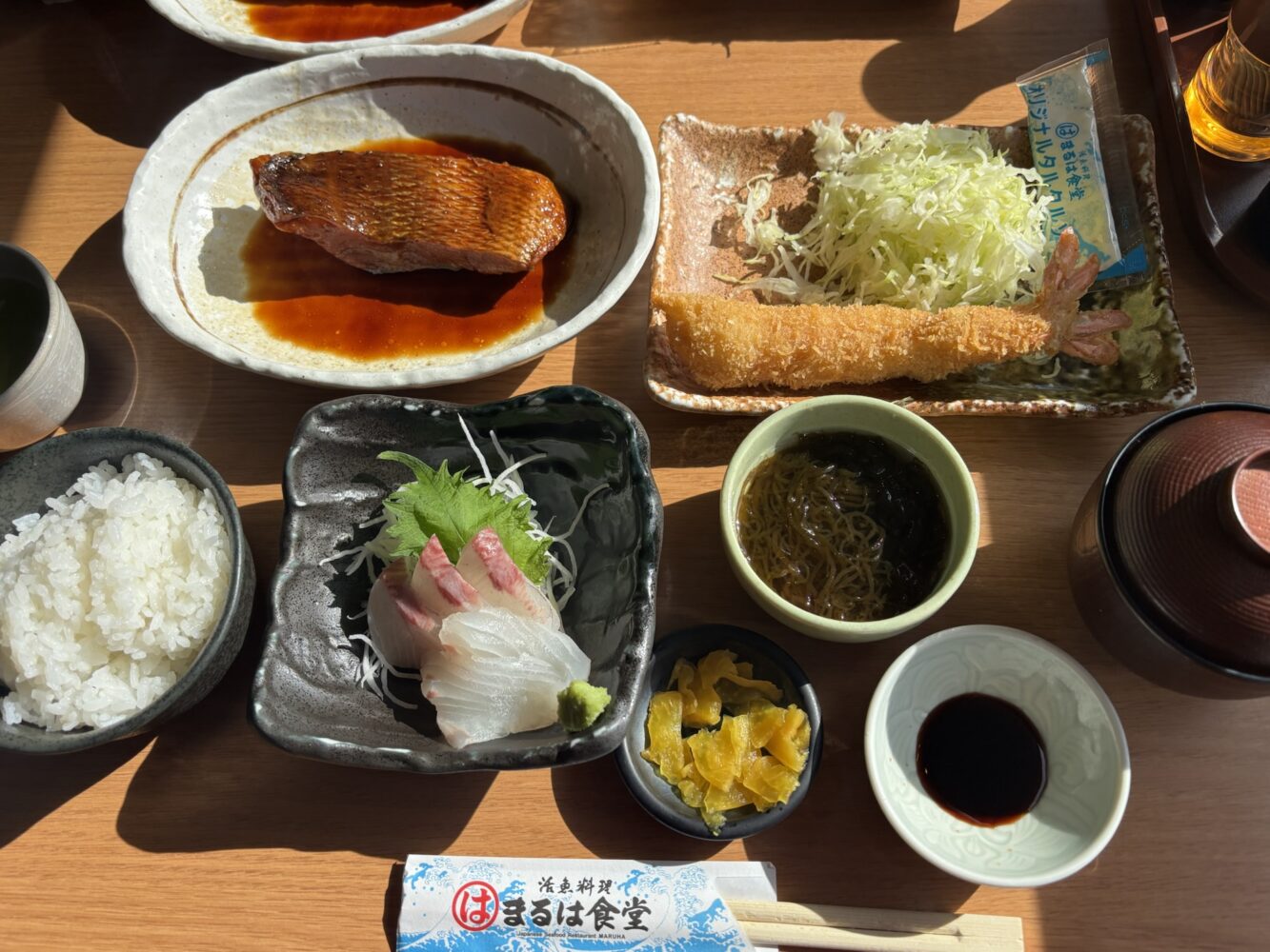 お刺身、エビフライ、煮魚、、ひとつでも十分すぎるクオリティのメイン料理がたくさんあって、食べる前から幸せな気持ちになりました(⸝⸝ ◜~◝ ⸝⸝)💕