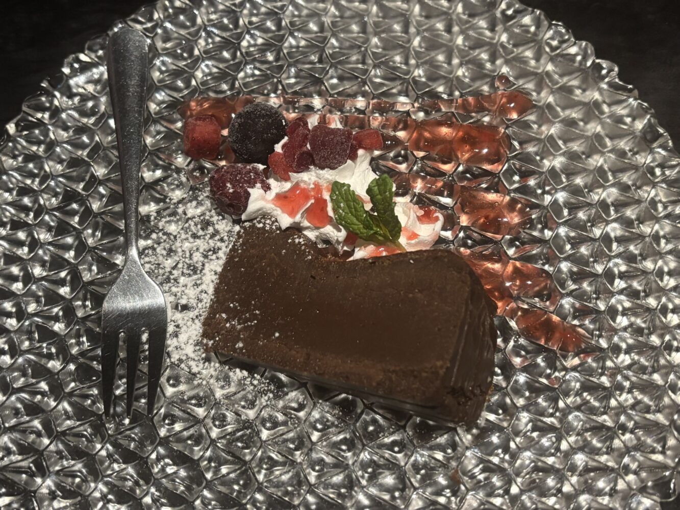 とっても濃厚なガトーショコラだったので、ベリーソースの甘酸っぱさとの相性が抜群すぎる💮💮