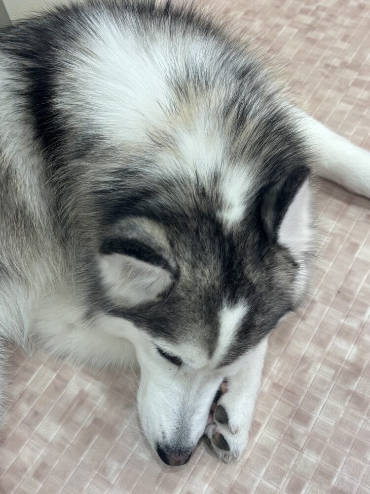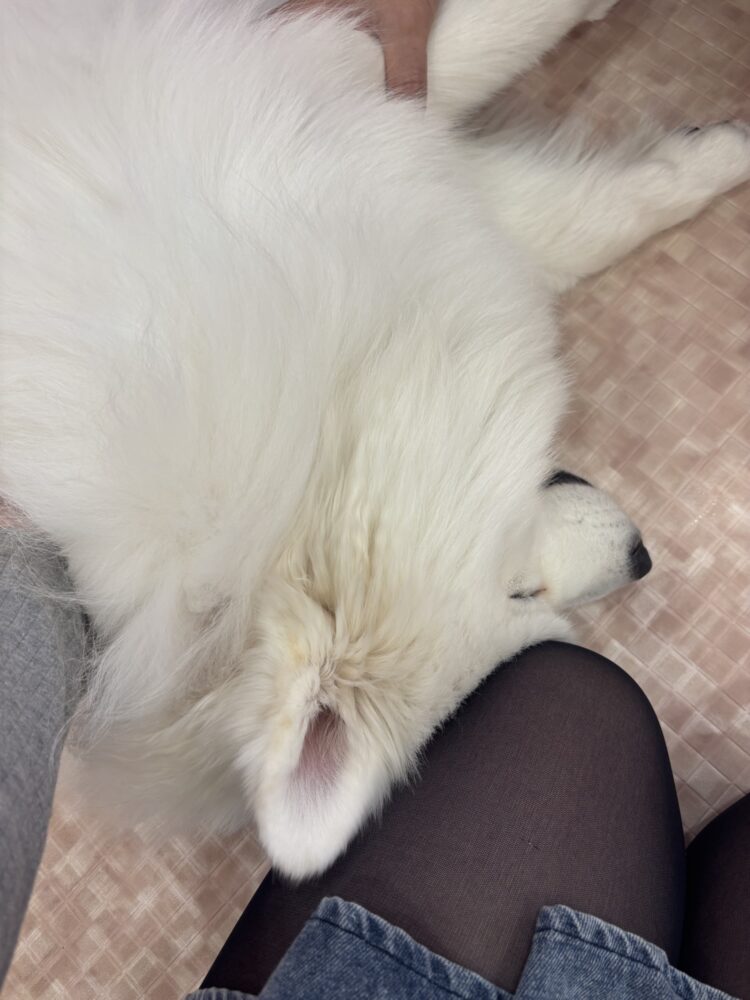 サモエドカフェ初心者なので、混ざっちゃうと見分けがつかないんですけど、寝てるところをじっくり見てるとみんな少しずつ違うんですよね( ´͈ ᵕ `͈ )💓