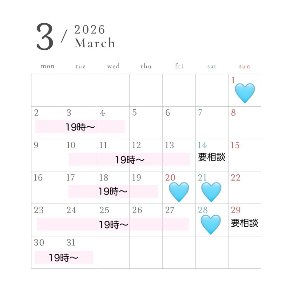 3月の予定表、まだ仮のところも多いのですが