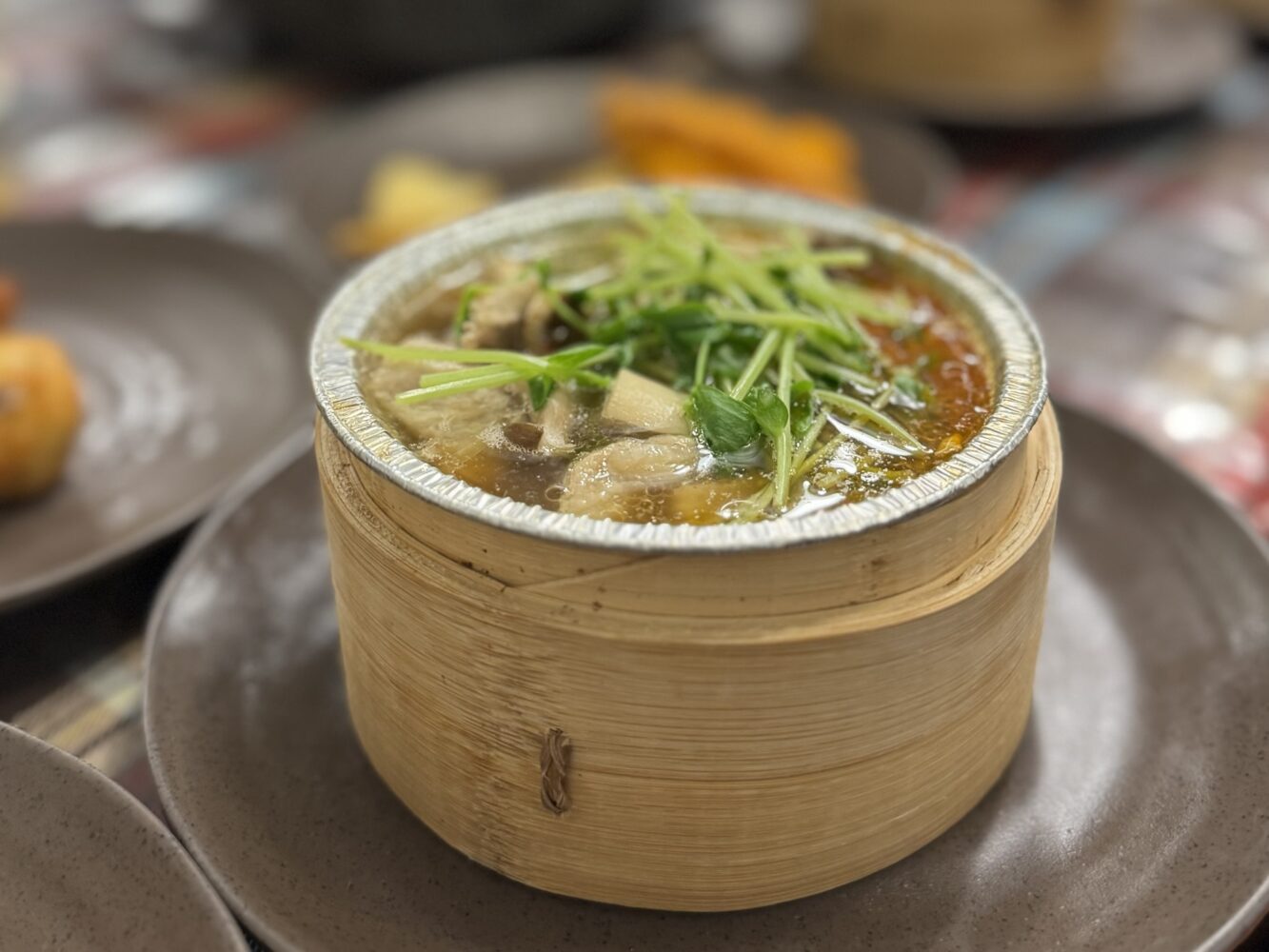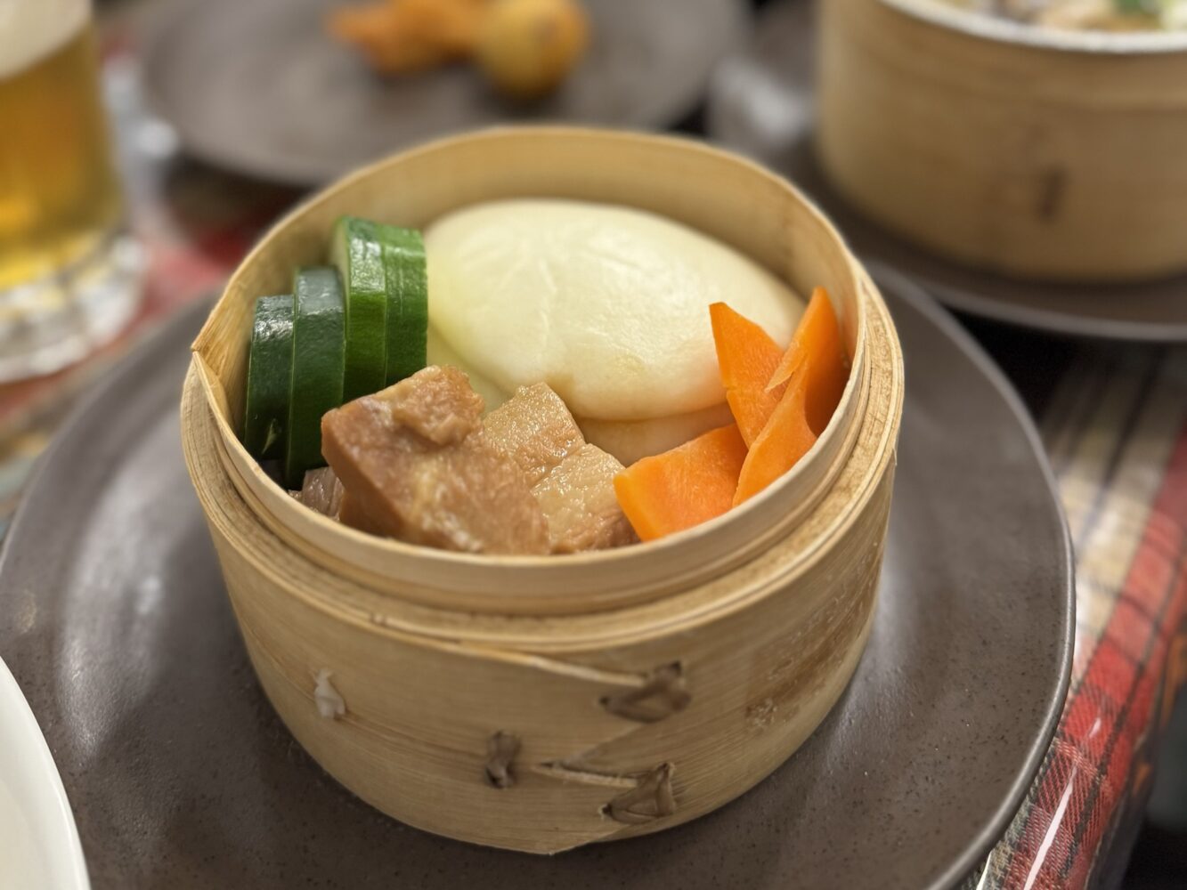 席にある大きな蒸し器であたためていただきます!