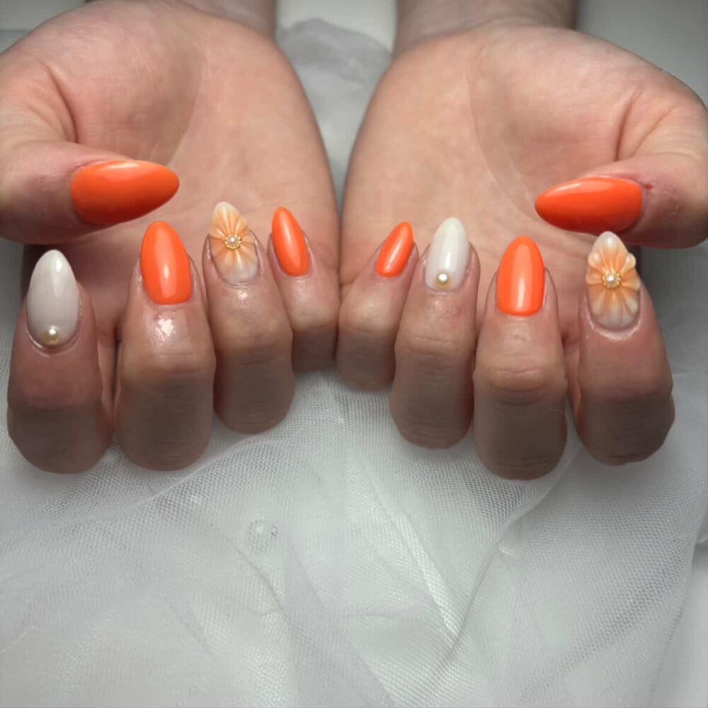この日は前日にネイルをして気分るんるんだったので、ネイルのオレンジに服も合わせてきたんです!!