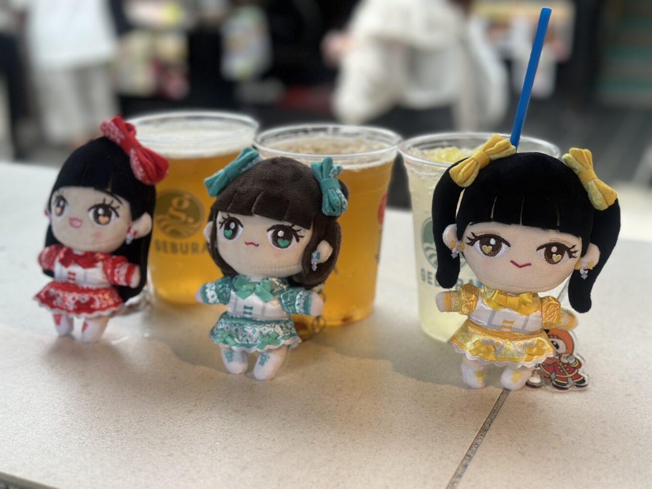 ご飯屋さんの待ち時間では 推し活をしながら最初の給水スポット!❤️💚💛