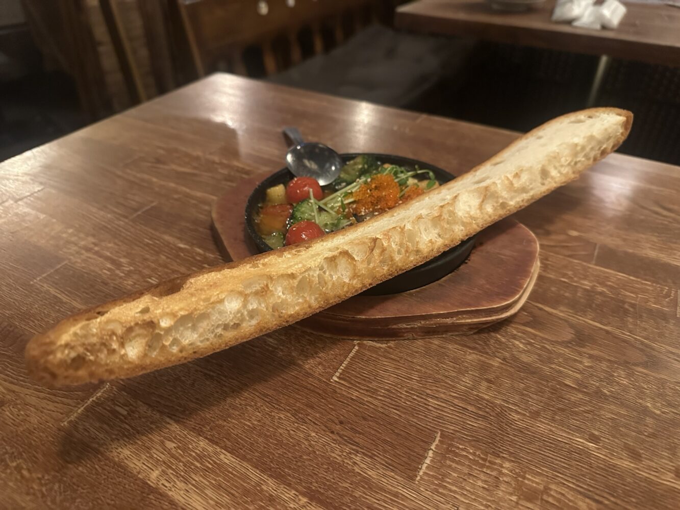 アヒージョのパンはこれくらいゴツイ方が好みでした🥹