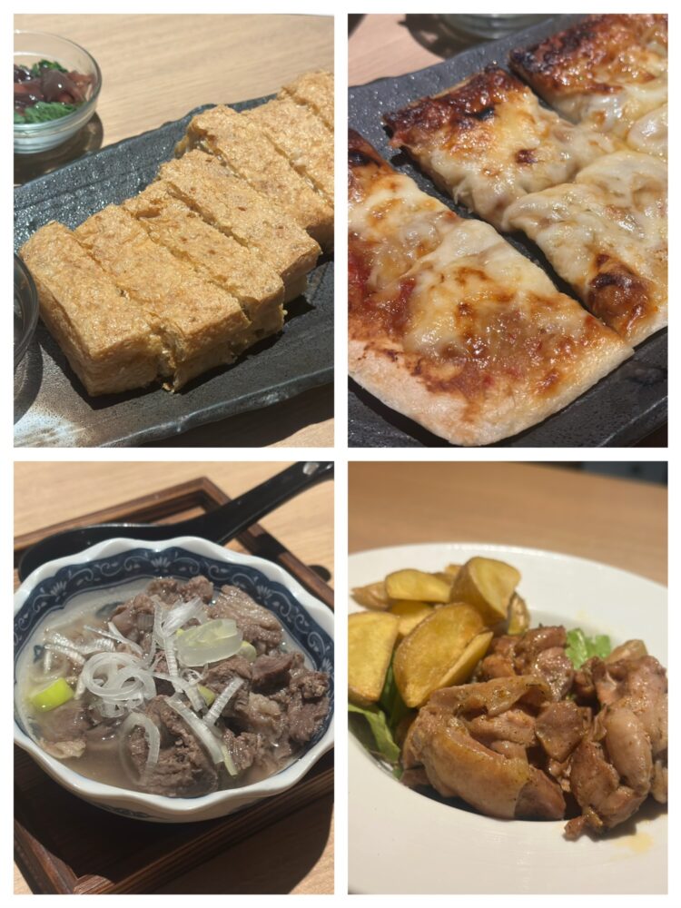 納豆の入った栃尾揚げに牛すじ煮込み、南蛮味噌のピザ、チキングリルは私の大好物すぎました!