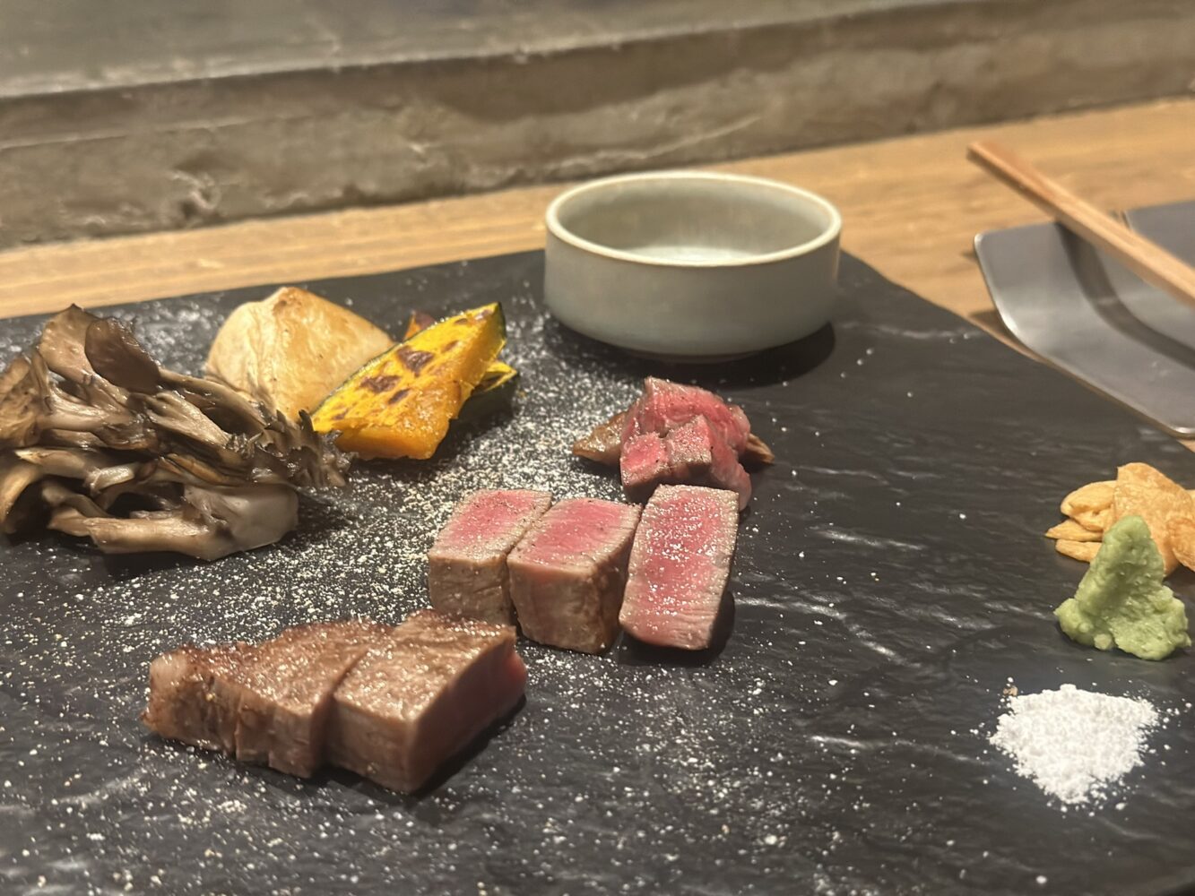 ガーリックチップも雪塩もワサビもどれもあうけど、やっぱり鉄板焼きのガーリックチップ大好きなんですよねぇ、、❤️🔥