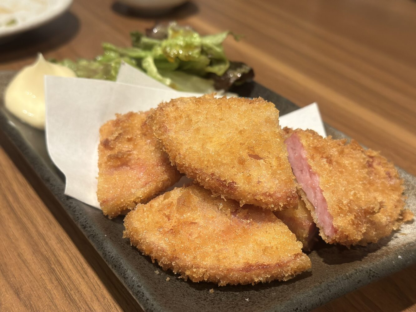 揚げ物にマヨネーズついてるとこって少なくて、ハムカツによくあるのはソースとか、ポテトだったらケチャップとか…