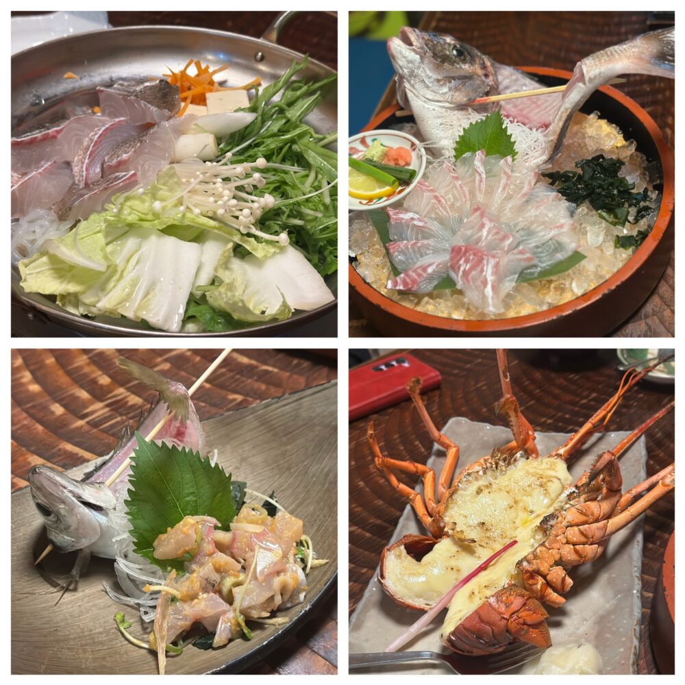 みんなで釣ったお魚や海老をその場で調理してくれるところなんだけど、自分たちが釣ったのもあって美味しさ200倍に感じる✨️