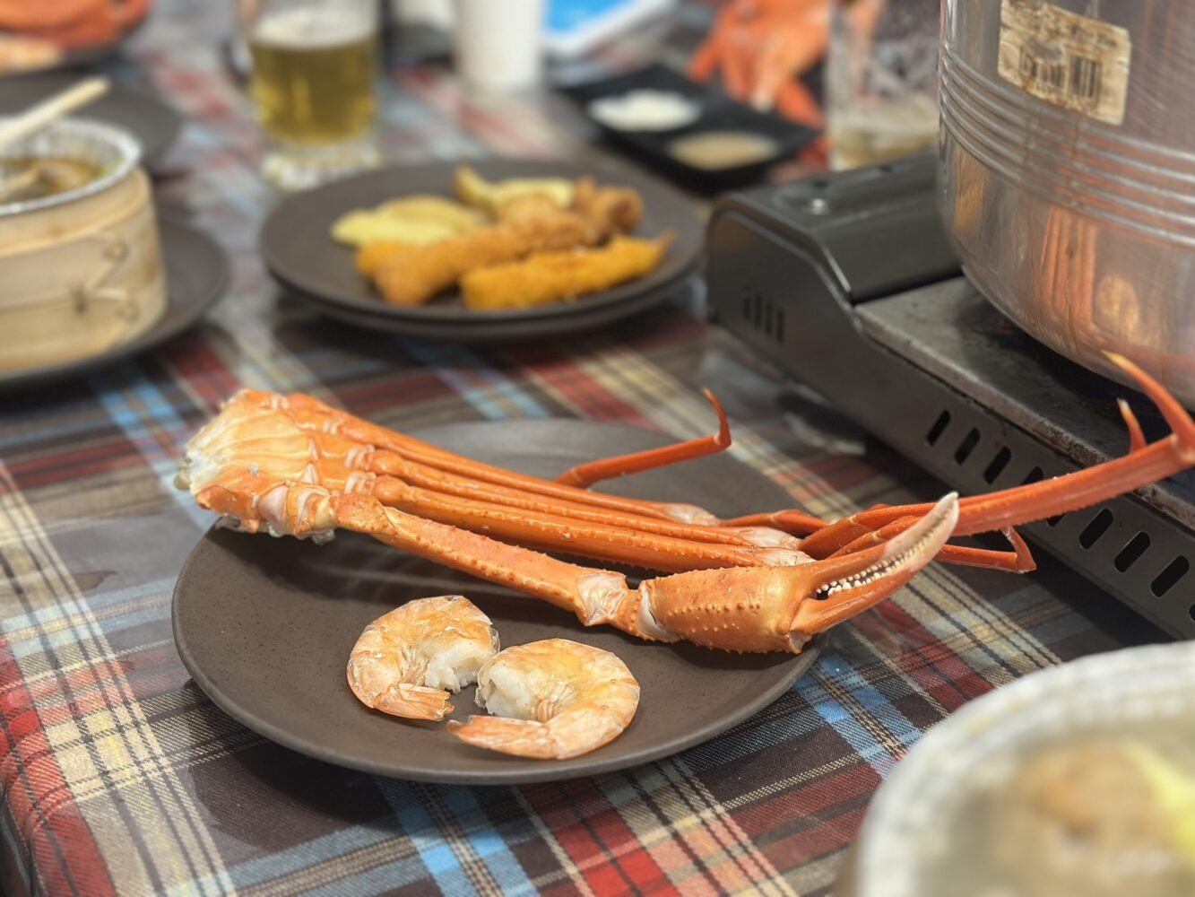 実はコースに海鮮がついてて、この大きなカニ脚が1人1個着いてるんです笑